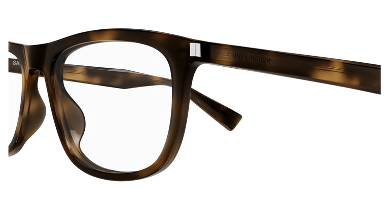 Acetate 'corner angle' with temples inspired by vintage models. Logo with the letters of saint laurent engraved on the temples.