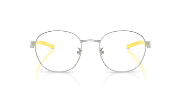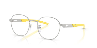 Sutiles expresiones del espíritu de competición de la Scuderia Ferrari HP amplifican este modelo minimalista. La bisagra sin tornillos aporta un elemento de innovación técnica, mientras que la forma redonda recuerda el estilo óptico clásico. Realizadas con un elegante metal, estas monturas aportan a las gafas un toque del espíritu icónico de la Scuderia Ferrari. Monturas redondas de metal con un elegante puente en negro mate, plata, gunmetal o gunmetal mate. La bisagra sin tornillos conecta las patillas ligeras con el frente, creando una característica de diseño aerodinámico única.
