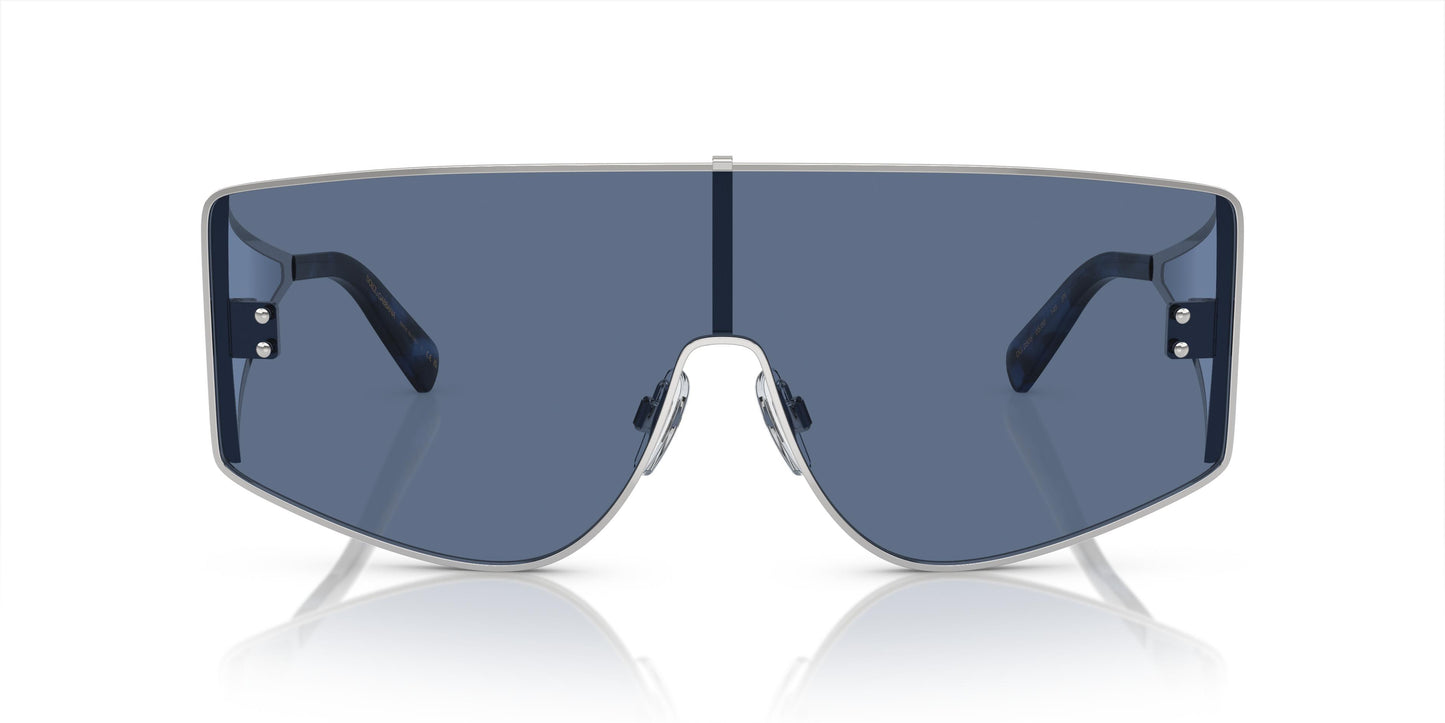 Dolce&Gabbana has never shied away from eye-catching styles, and these unisex metal sunglasses are proof of that. With a striking screen frame and lenses integrated into the temples, the logo, studs, and color palette truly embrace minimalism. The color range includes a gold option with black lenses, enhanced with studs on the front and Dolce&Gabbana logos on the temples. This ultra-modern frame features lenses not only on the front but also on the temples, finished with acetate tips.