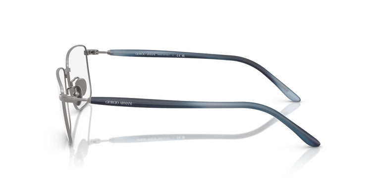 This rectangular optical silhouette features an ultra-thin metal front, crafted with meticulous precision. The refined design smoothly transitions into sleek tubular bio-acetate temples, subtly adorned with the discreet Giorgio Armani logo, embodying understated sophistication. The metal nose pads are designed for enhanced comfort and a personalized fit. Matte finishes combine with striped temples for a modern and sophisticated touch.