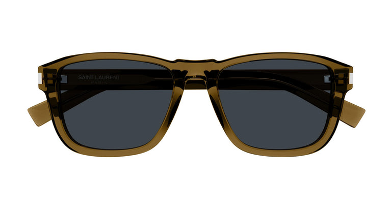A rectangular shape with soft lines in the iconic key concept: naked wirecore. The model is enhanced by a "corner angle" elbow with a metallic frame design. The thick acetate temples are crafted from an innovative new material that allows the frame to be visible with the Saint Laurent logo laser-engraved in a high-gloss finish.