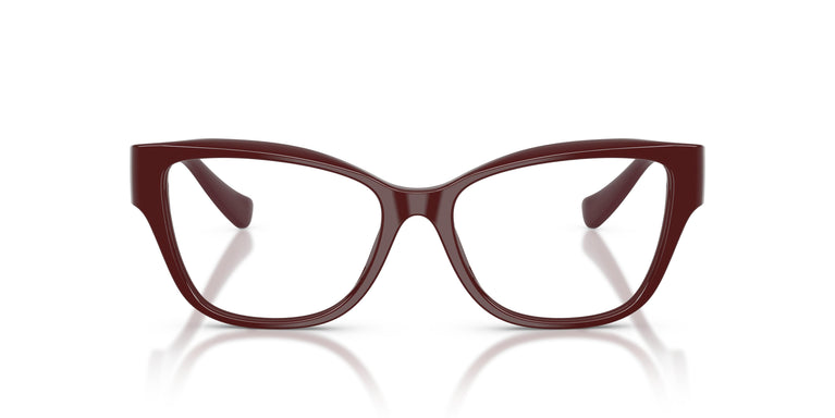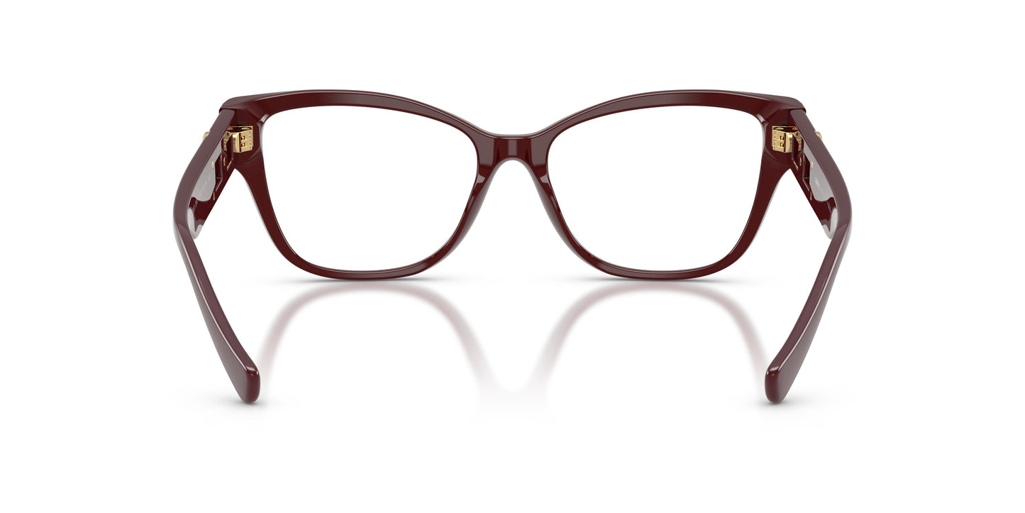 Inspired by a historic Versace piece from the brand's archives. With a recycled acetate front and injected temples, this timeless frame combines tradition with a contemporary twist. Feminine cat-eye frame in a sophisticated palette of colours, ranging from black and havana to transparent brown and gradient pink-brown temples adorned with a reinterpreted gold jellyfish decoration, recovered from the Versace archives.