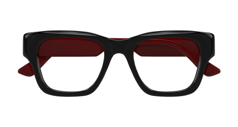 Acetate models with double-layered colored temples reminiscent of the iconic web detail. Square design. Logo with Gucci lettering on the temples. Modern and commercial color palette with at least two color combinations.