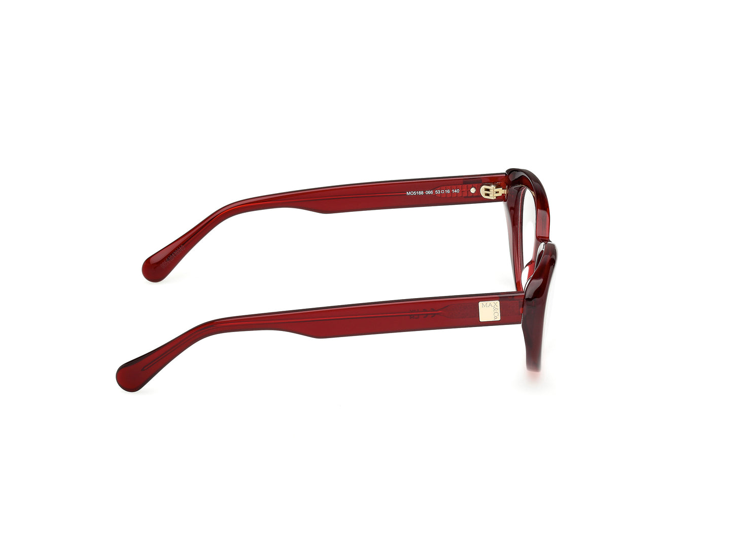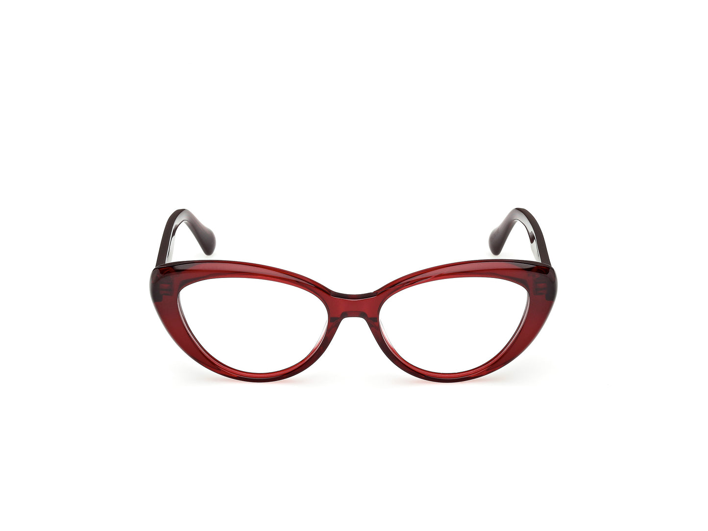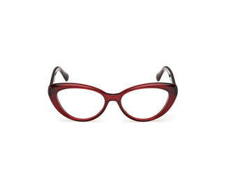 Explore sophistication with the Max&co MO5188 optical glasses, a tribute to feminine elegance. Their cat-eye frames, crafted with a plastic front in a dazzling, glossy dark red, capture attention with their bold design. The delicately sculpted temples complement the bridge, achieving a perfect balance between style and comfort. With a meticulously calculated caliber, these glasses are the ideal accessory for those seeking a touch of distinction and modernity.