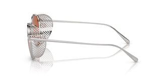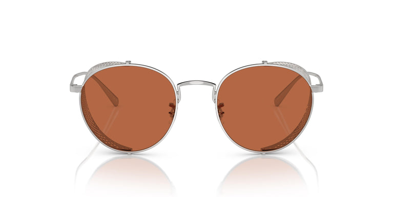 Oliver Peoples collaborates with Italian fashion brand Brunello Cucinelli to offer a collection focused on craftsmanship and creative excellence. This classic panto sunglass is enhanced with a unique perforated side shield that showcases the intricacy of the design. Perforated metal side shield. Brunello Cucinelli shield logo engraved at the temple tip.