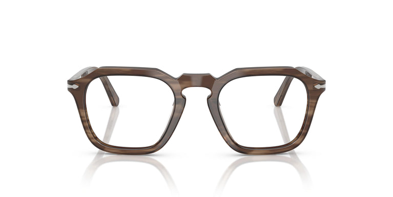 Discover timeless sophistication with Persol optical glasses model 0po3292v. Their square frames, crafted from high-quality acetate, feature an elegant brown striped color that evokes a classic and distinguished style. The precision-engineered bridge and carefully finished temples ensure a perfect, comfortable fit. This unisex design is a must-have for those looking for an accessory that combines elegance and functionality with every look.