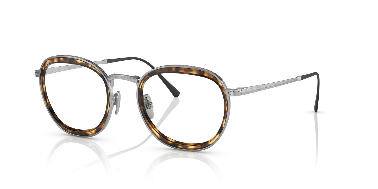 Persol once again reaches a new standard of impeccable quality with the Titanium collection. This optical model comes with exclusive engraving in four classic and contemporary titanium colors. The Panthos frame with titanium and acetate achieves an elegant and simple optical look. The unmistakable Persol arrow stands out on the titanium temples, along with other finely engraved details.