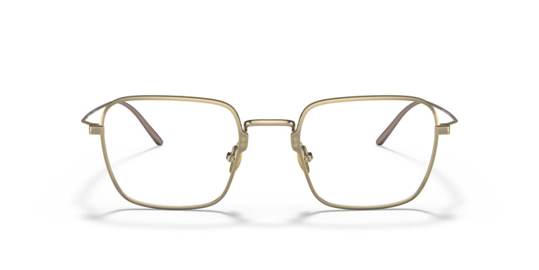 Made in Japan. Titanium and streamlined profiles give this premium optical product a minimalist and sophisticated appeal. A lightweight rectangular optical shape with sophisticated matte or glossy metallic tones. Prada-branded nose pads. A refined palette of satin-finished titanium or glossy pale gold and modern matte black.