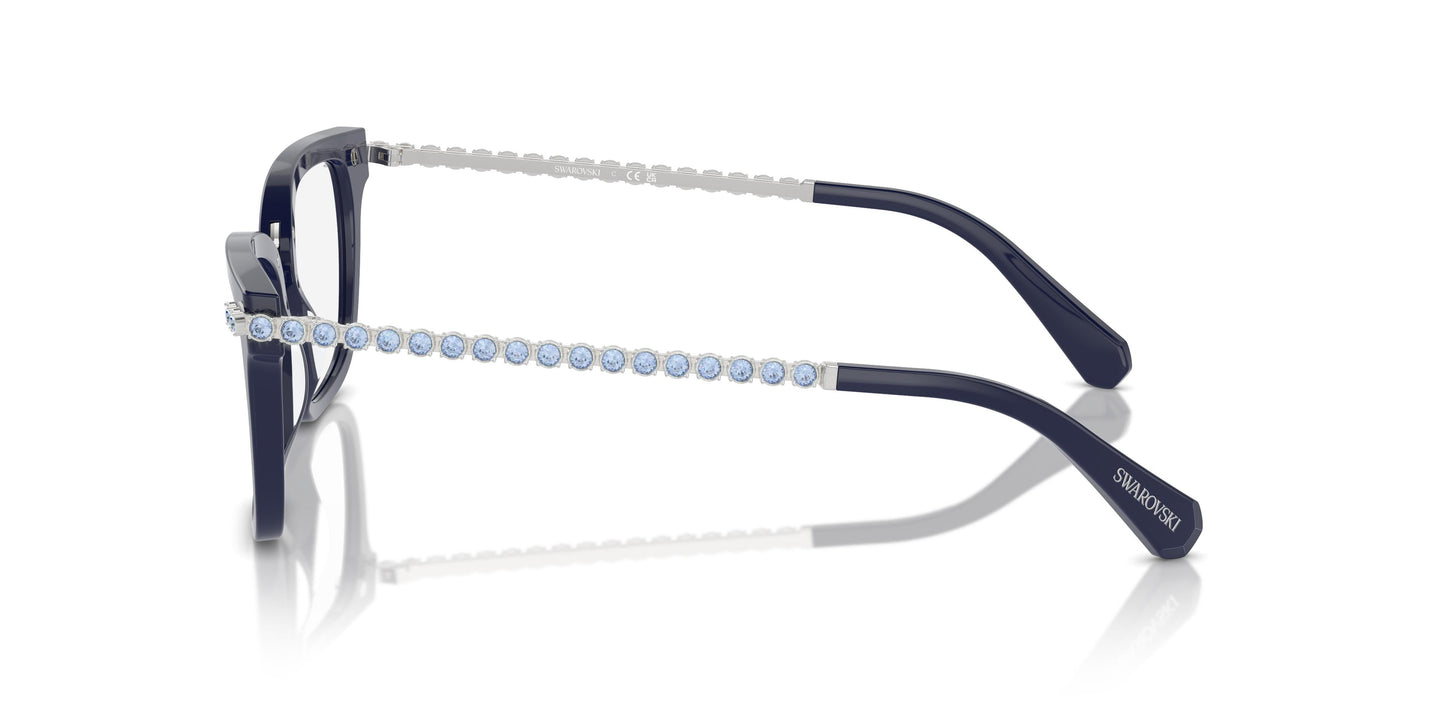 View model that effortlessly blends the best of both worlds and provides a harmonious and elegant choice for the undecided between metal or acetate. Swarovski draws inspiration from tennis bracelets and their cheerful allure and sparkle to adorn the bars. Swarovski crystals inspired by tennis bracelets adorn the metal bars of the model in: transparent, golden shadow, light sapphire or peridot. The terminals of the acetate bars match the color of the rings and the Swarovski logo of the metal bridge and bars.