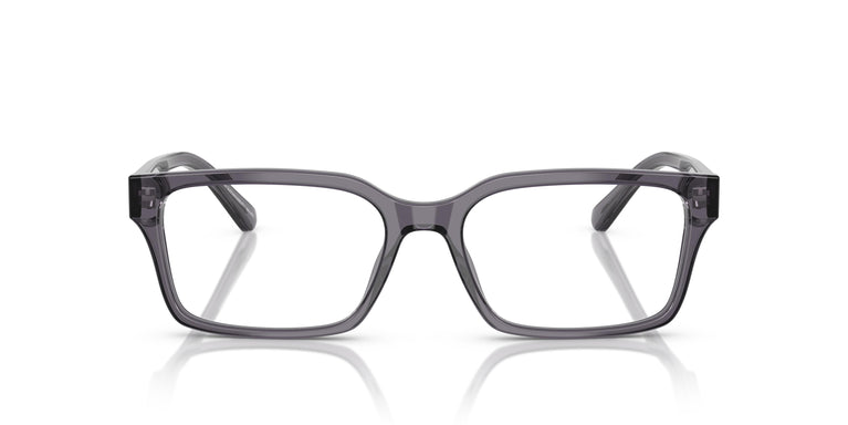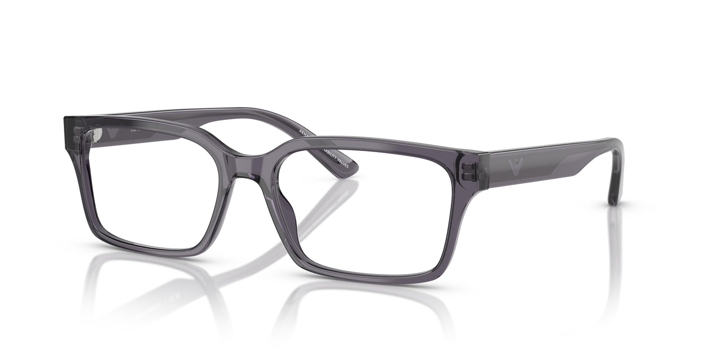 Emporio Armani exudes masculine style with these fresh rectangular bioacetate frames. The transparent or iridescent coating elegantly reveals an inner metal core in the temples, adding a contemporary touch. The eagle logo engraved in the metal design adds a subtle branding touch. Rectangular bioacetate frames with a distinctly masculine front for a bold yet refined look. The translucent or iridescent design of the temples reveals the brand's metal core, adorned with the iconic eagle logo.