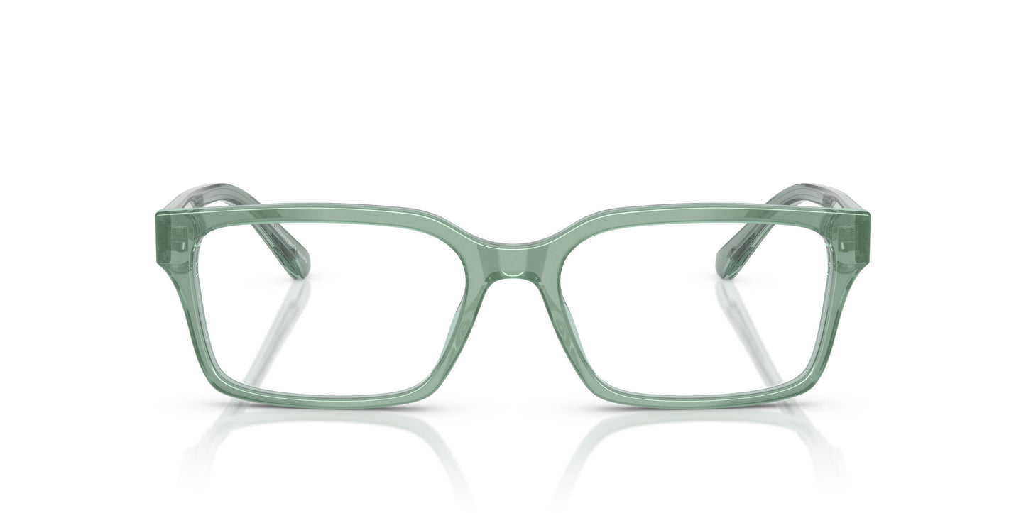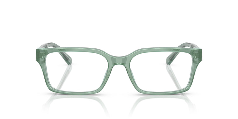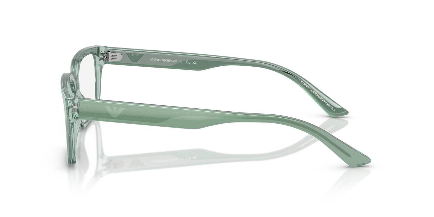 Emporio Armani exudes masculine style with these fresh rectangular bioacetate frames. The transparent or iridescent coating elegantly reveals an inner metal core in the temples, adding a contemporary touch. The eagle logo engraved in the metal design adds a subtle branding touch. Rectangular bioacetate frames with a distinctly masculine front for a bold yet refined look. The translucent or iridescent design of the temples reveals the brand's metal core, adorned with the iconic eagle logo.