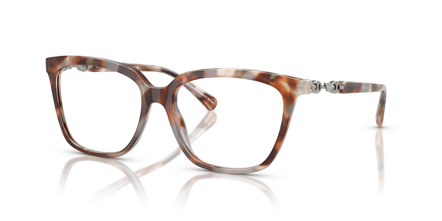 These captivating frames feature a bold cat-eye shape, accentuating the feminine front and adding a touch of vintage charm to any look. The metallic detailing on the temples, reminiscent of a delicate bracelet chain, adds a touch of refinement and luxury, elevating these glasses from a mere accessory to a true fashion statement. Soft bioacetate crafted in an elegant cat-eye silhouette for a touch of glamour. Reminiscent of the elegance of an Emporio Armani bracelet, the temples feature a metallic chain and bioacetate tips.