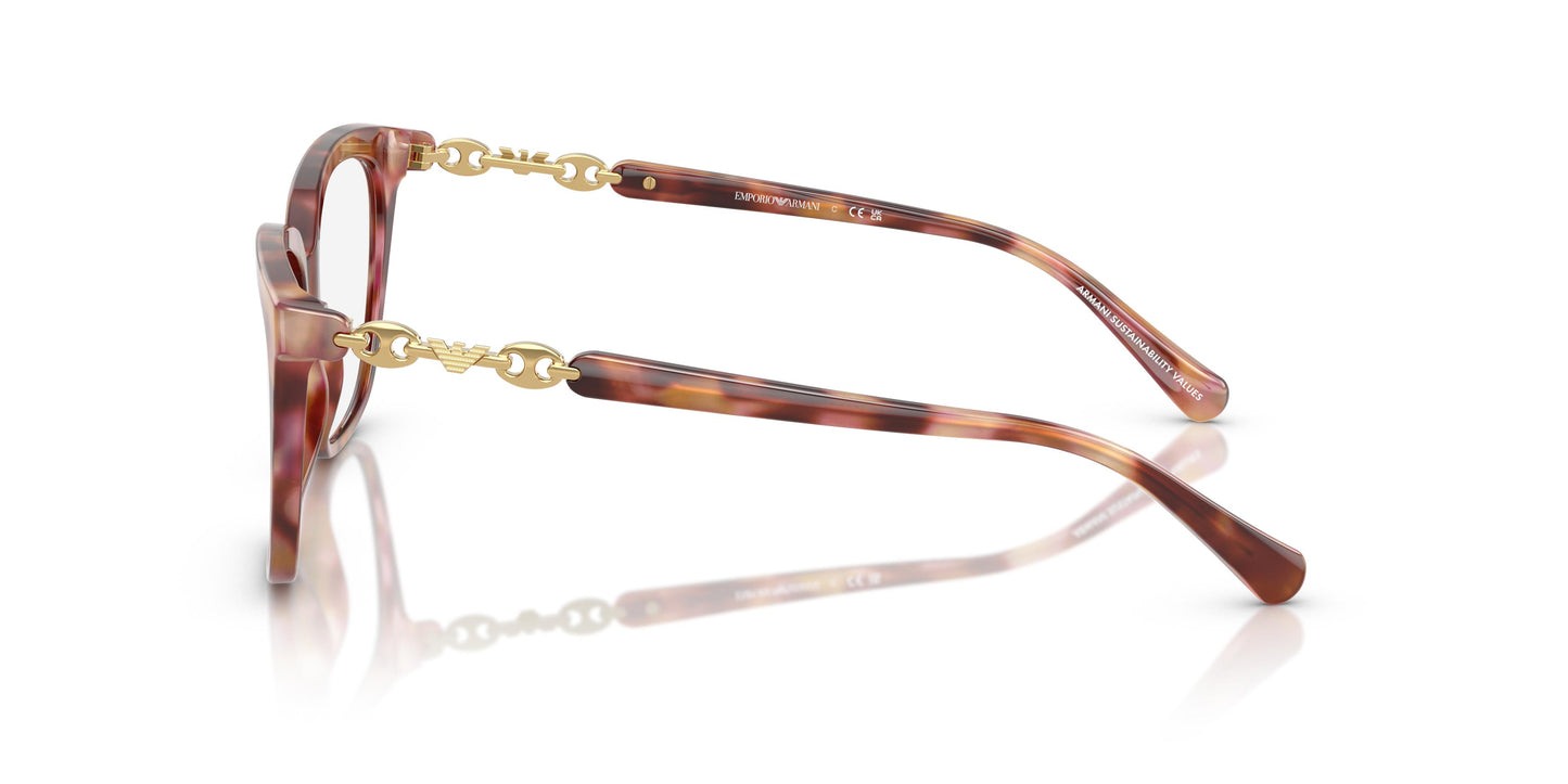 These captivating frames feature a bold cat-eye shape, accentuating the feminine front and adding a touch of vintage charm to any look. The metallic detailing on the temples, reminiscent of a delicate bracelet chain, adds a touch of refinement and luxury, elevating these glasses from a mere accessory to a true fashion statement. Soft bioacetate crafted in an elegant cat-eye silhouette for a touch of glamour. Reminiscent of the elegance of an Emporio Armani bracelet, the temples feature a metallic chain and bioacetate tips.