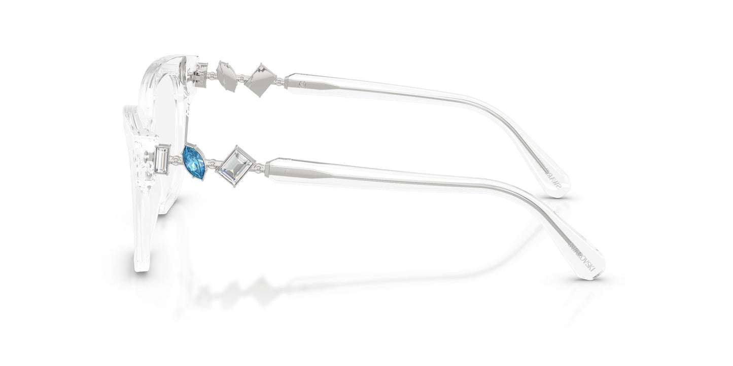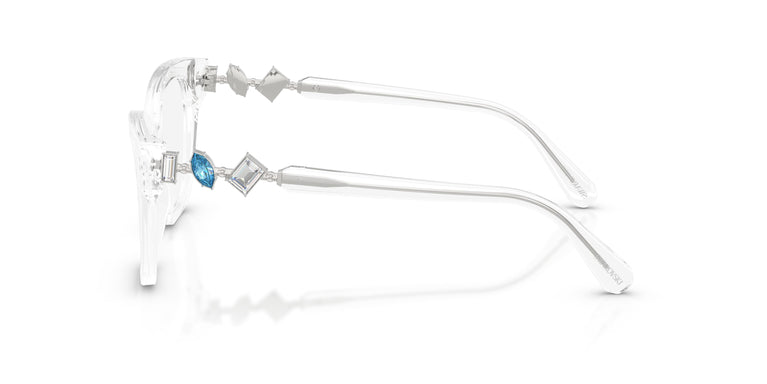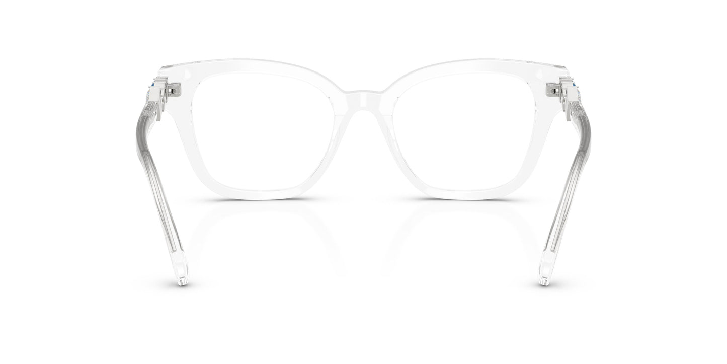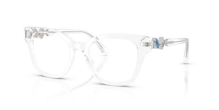 Una juguetona y artística disposición de cristales a lo largo de las patillas hace que estas gafas ópticas realmente destaquen. Swarovski pone su toque característico en este diseño cuadrado de acetato, mostrando su inigualable dominio de los cristales, el color y la luz, dando como resultado un modelo llamativo a la par que elegante. Los cristales de diferentes dimensiones, colores y formas son un llamativo añadido a la sección metálica de las patillas. Gafas ópticas de forma cuadrada disponibles en una gama de colores de acetato que incluye negro, habana, verde oscuro, transparente y rosa transparente.