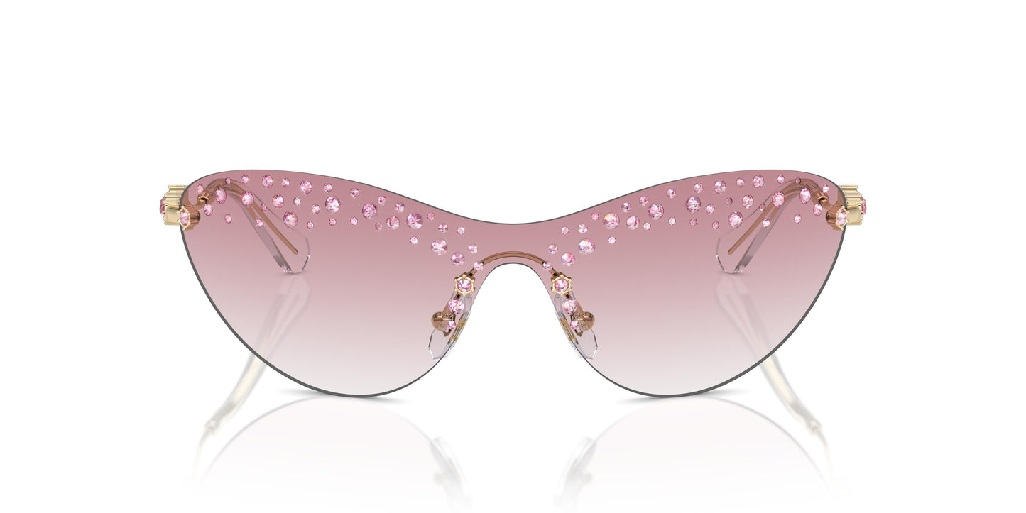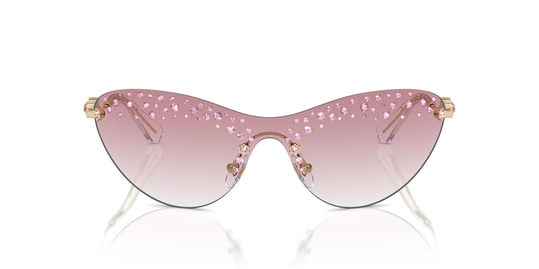 The Swarovski crystals of these magnificent mask sunglasses offer a unique eyeshadow effect and shine just above the eyes. Additionally, they feature more crystals on the wavy temples to offer a groundbreaking look. The curved metal temples are adorned with star-shaped Swarovski crystals and finished with acetate tips for added comfort. Unique lenses that offer a current mask design amplified by clear or light pink Swarovski crystals.'}