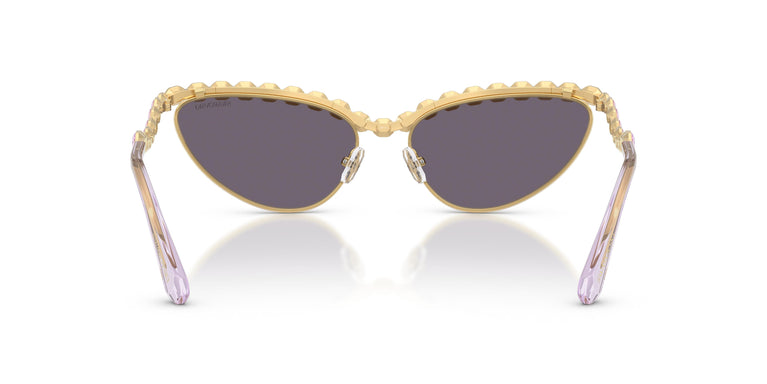 Inspiradas en la familia de joyas Millenia, estas monturas de ojo de gato se enriquecen con cristales de corte octogonal engastados a lo largo de la línea de las cejas y las patillas. También se incluye una cadena extraíble en tono dorado para el modelo colorway, compuesta de metal dorado y cristales transparentes, que añade aún más luz y extravagancia al look. Exclusivos cristales octogonales del mismo tamaño en el frente, el puente y las varillas onduladas, inspirados en el icónico collar Millenia. Entre una vibrante selección se encuentra un nuevo color de cristal violeta en una montura de metal dorado con terminales de patillas lilas transparentes y lentes de color a juego.