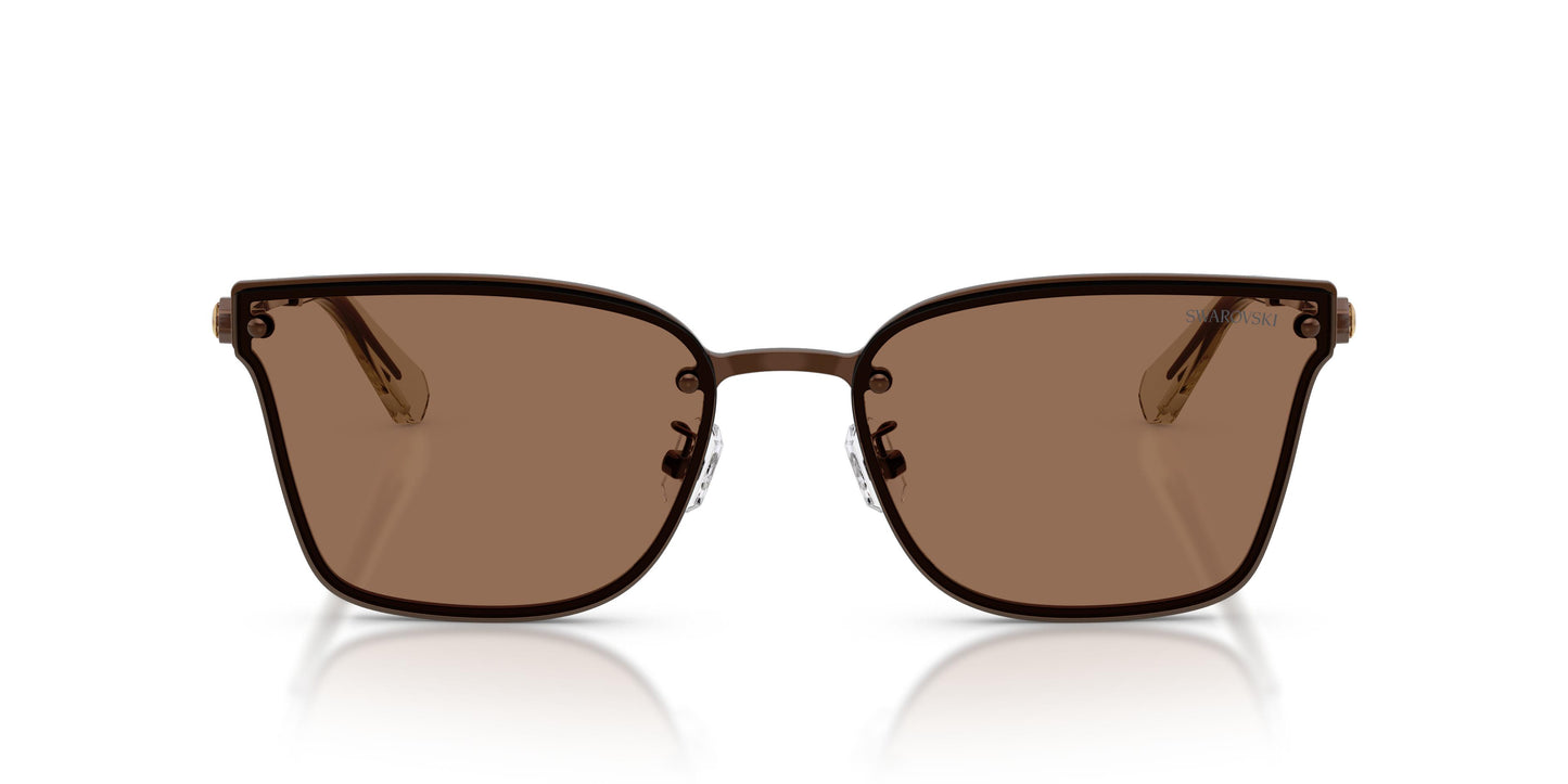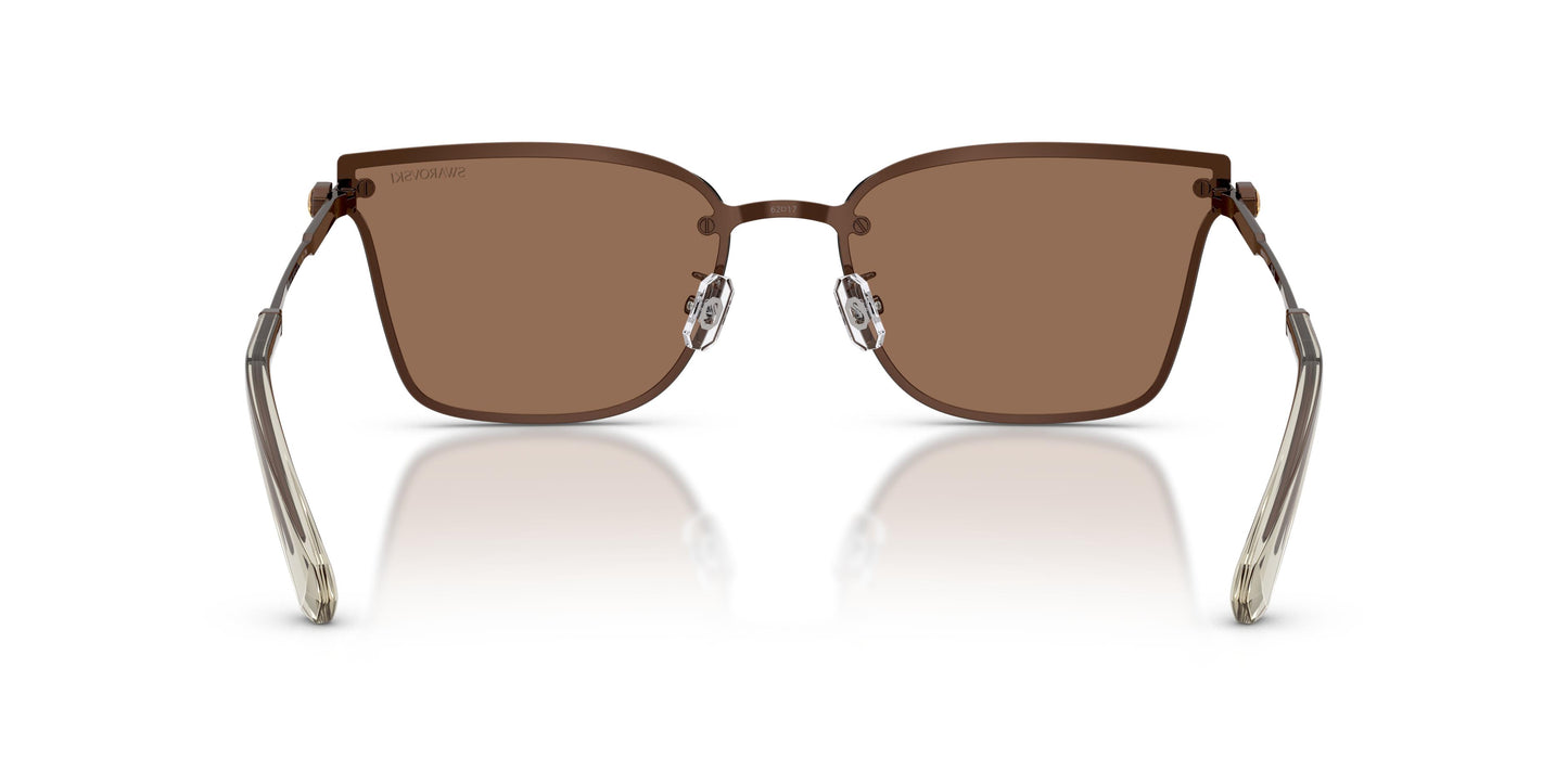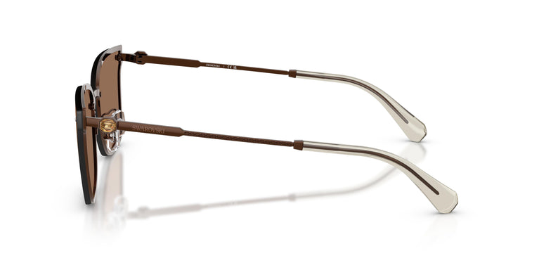 Esta gafa de sol cuadrada, que atraerá todas las miradas, cuenta con unas características lentes planas que la convierten en el accesorio definitivo para un look glamuroso. Disponible en varios colores, el diseño presenta grabados octogonales a lo largo de las patillas metálicas, bellamente rematadas con un radiante cristal octogonal en la bisagra. Pequeñas formas octogonales están grabadas en las patillas, complementando un pasador metálico en cada lente plana que conecta con los aros internos. Las patillas, acabadas con puntas de acetato, presentan un logotipo grabado y un exclusivo cristal octogonal en colores sombra dorada, transparente, violeta y rosa claro.