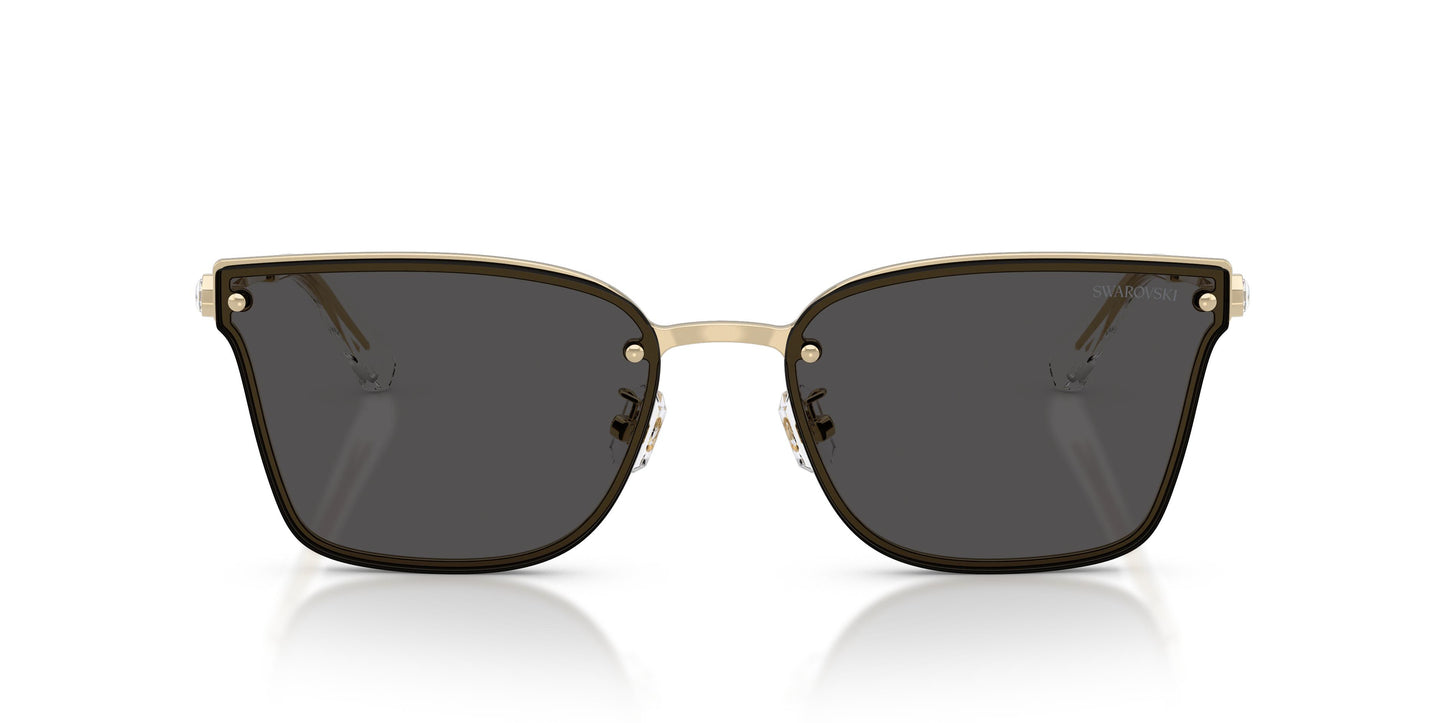 Esta gafa de sol cuadrada, que atraerá todas las miradas, cuenta con unas características lentes planas que la convierten en el accesorio definitivo para un look glamuroso. Disponible en varios colores, el diseño presenta grabados octogonales a lo largo de las patillas metálicas, bellamente rematadas con un radiante cristal octogonal en la bisagra. Pequeñas formas octogonales están grabadas en las patillas, complementando un pasador metálico en cada lente plana que conecta con los aros internos. Las patillas, acabadas con puntas de acetato, presentan un logotipo grabado y un exclusivo cristal octogonal en colores sombra dorada, transparente, violeta y rosa claro.