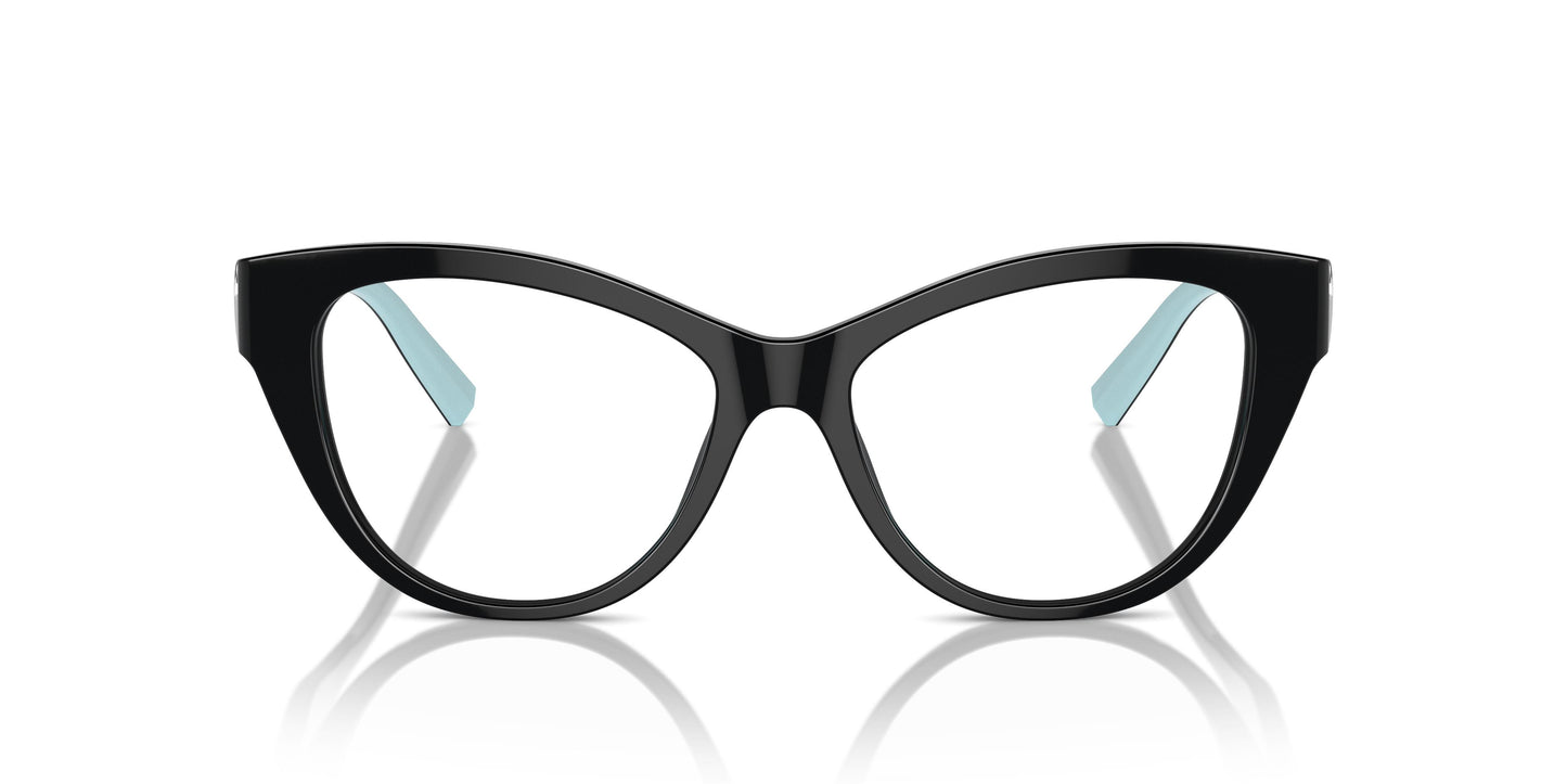 This cat-eye view model from tiffany & co. is adorned with the jeweler's unmistakable heart-shaped emblem. The iconic return to tiffany® motif serves as a hinge, bringing a bold and fresh perspective to the legendary house code. Color options include black and Havana with selected styles enhanced by an unmistakable tiffany blue® interior. Bioacetate view frame with a feminine cat eye and the iconic return to tiffany® heart motif that serves as a hinge with tiffany blue® interior.