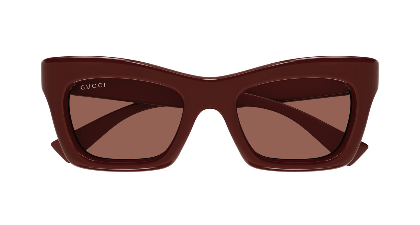 Introducing an accessory that redefines luxury: the Gucci GG1773SA sunglasses. Designed for the modern woman, these square frames feature recycled acetate frames in a sophisticated burgundy hue that evokes elegance and a commitment to the environment. The carefully sculpted temples are integrated with a bridge that ensures comfort and style. The brown lenses add a warm touch, perfect for any occasion. Discover the sublime fusion of design and sustainability.