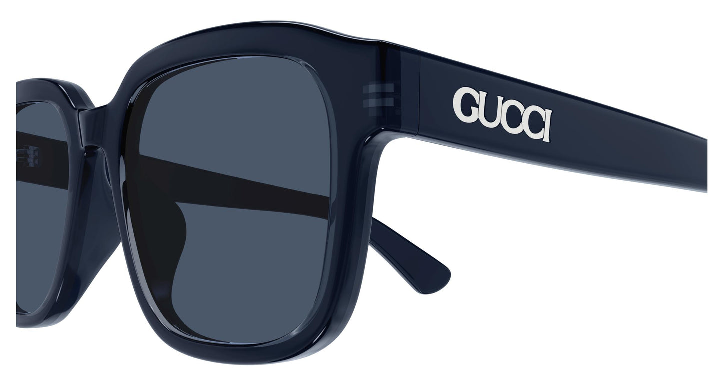 Acetate models with a two-layer color effect that guarantee a modern aesthetic. Rounded square design. Gucci lettering logo located under the lacquered frame.