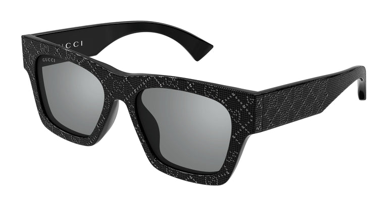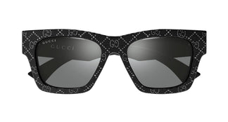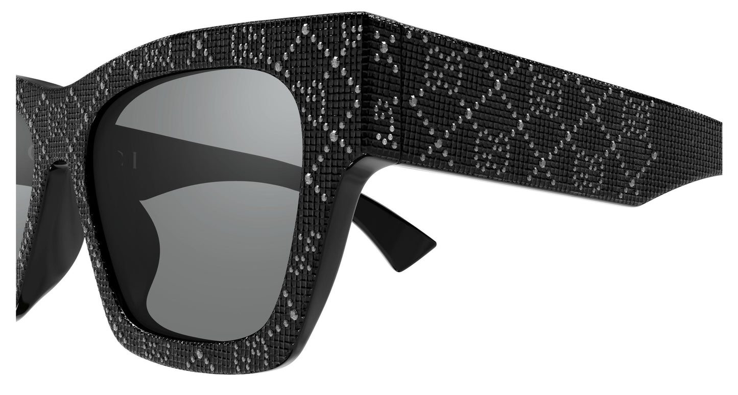 Acetate models with bold, intense colors and a pantothenic angle. Square cat-eye design. Three-dimensional Gucci logo on the temples. Trendy color palette.