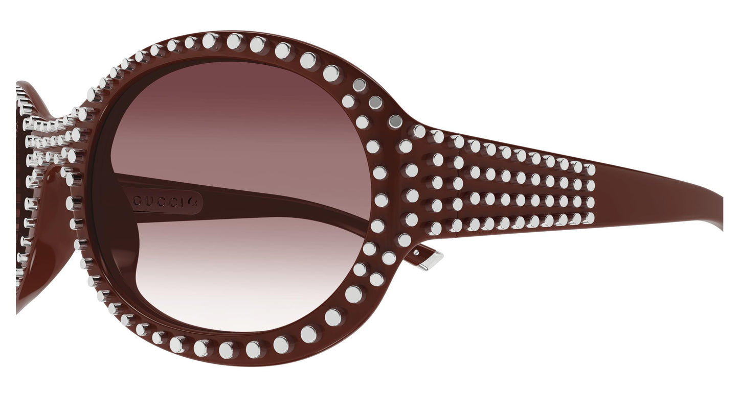 Discover the sophistication of Gucci GG2013S sunglasses, designed for women who appreciate elegance in every detail. Their square frames, crafted from recycled acetate in a deep burgundy color, add a touch of distinction and eco-consciousness. The carefully sculpted temples offer a perfect fit, while the well-defined bridge ensures all-day comfort. Their red gradient lenses not only protect but also enhance every look with an air of mystery and glamour.