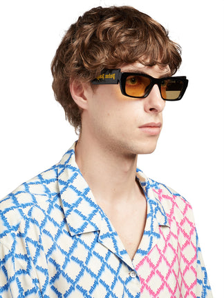 Introducing the Palm Angels Palm, unisex sunglasses that redefine contemporary sophistication. Their square frames in sleek black are a tribute to urban style with a touch of distinction. The sturdy temples and carefully crafted bridge ensure a comfortable and secure fit, while their timeless design makes them a must-have accessory for those who value quality and design. These sunglasses capture the essence of modern fashion with an undeniably chic feel.