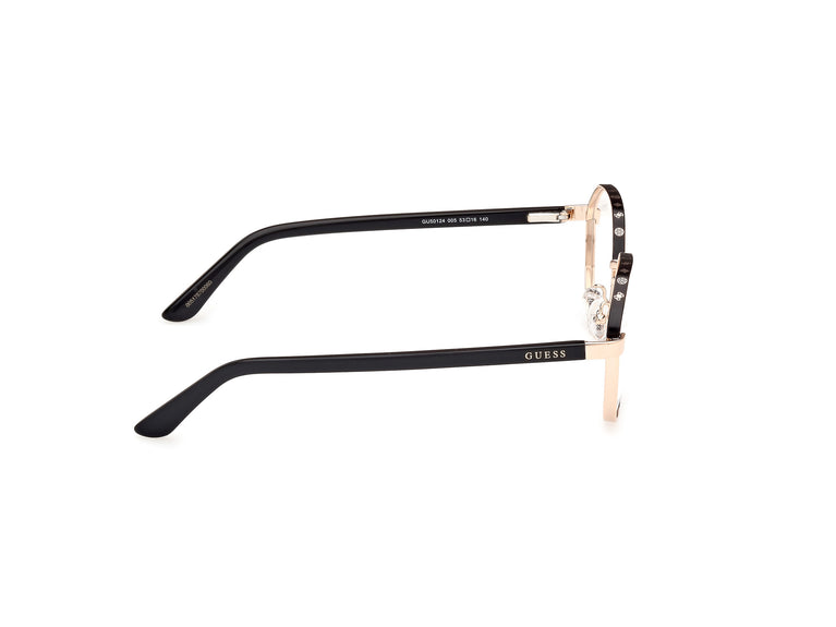 Discover the exquisite Guess GU50124 optical glasses, designed for the modern woman who appreciates timeless sophistication. The frame, crafted from an elegant shiny deep gold metal, envelops the clear demo lenses with a touch of understated luxury. The delicately crafted bridge and slender temples combine for an impeccable fit, while the perfectly proportioned caliber ensures a refined aesthetic. A must-have accessory for those who value style and quality.