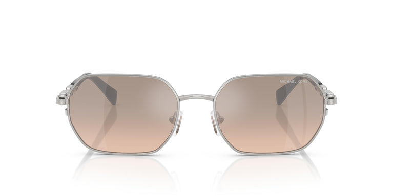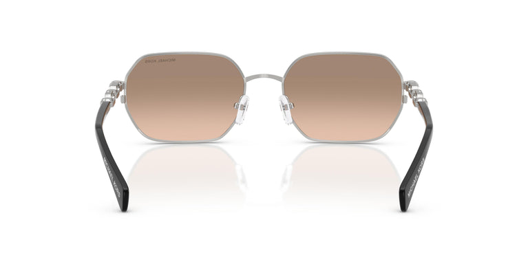 The irregular metal frame exudes a unisex appeal, while the sleek temples feature a jewelry-inspired chain-link motif. Decorated with the iconic Michael Kors Astor studs, they are both bold and elegant. The metal temples feature a striking chain-link design, adorned with the iconic Michael Kors Astor studs. The temple tips are finished with the Michael Kors logo.