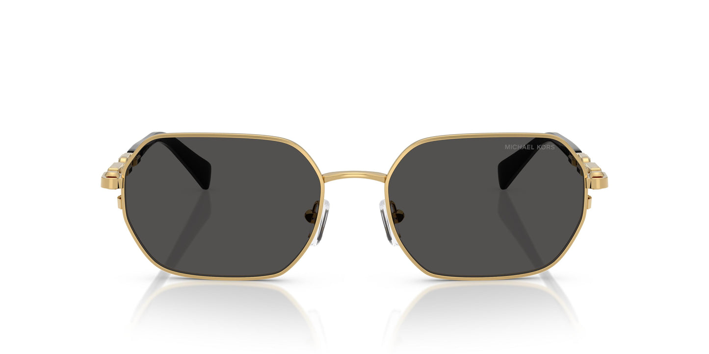 The irregular metal frame exudes a unisex appeal, while the sleek temples feature a jewelry-inspired chain-link motif. Decorated with the iconic Michael Kors Astor studs, they are both bold and elegant. The metal temples feature a striking chain-link design, adorned with the iconic Michael Kors Astor studs. The temple tips are finished with the Michael Kors logo.