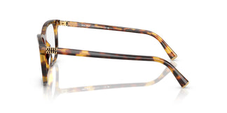 Reflecting Miu Miu's iconic blend of playfulness and sophistication, this square optical design stands out with its elegant volumes and new gradient color combinations. The acetate frame is complemented by an elegant vertical metal logo that forms part of the hinge structure. This design, also available in a full-frame version, features slim acetate temples that showcase a vertical metal Miu Miu logo integrated into the hinge structure. A square optical model available in a rich range of acetate colors, including two new gradient options in brown or burgundy, as well as two transparent options.