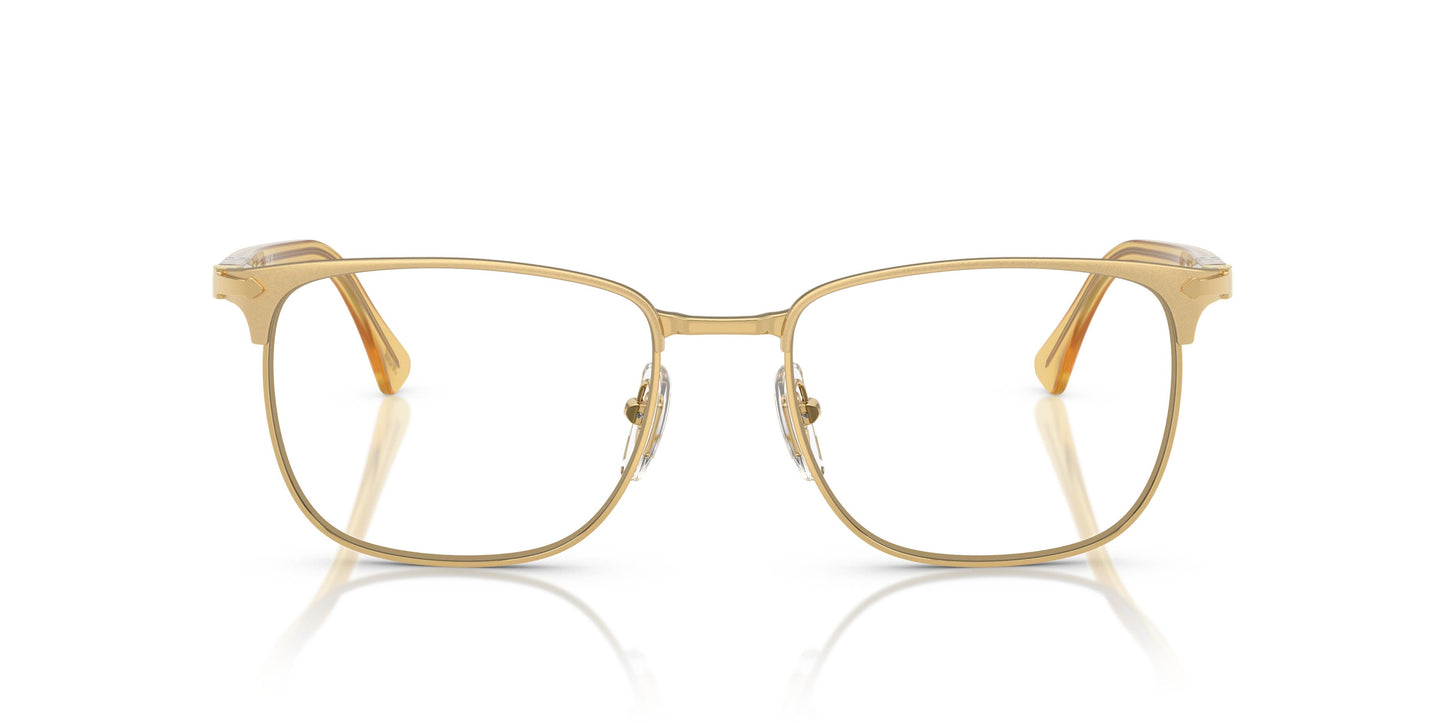 Crafted with Persol's signature Italian style, these optical frames combine a square metal front with sleek acetate temples. Slim profiles ensure effortless wear, while the iconic Supreme Arrow, Meflecto, and color options add a touch of heritage. Coordinating colors include brown with Havana, black with black, and gold with Miele, with a two-tone option of gunmetal with terra di siena. A square metal front is paired with slim acetate temples featuring the iconic silver Meflecto.