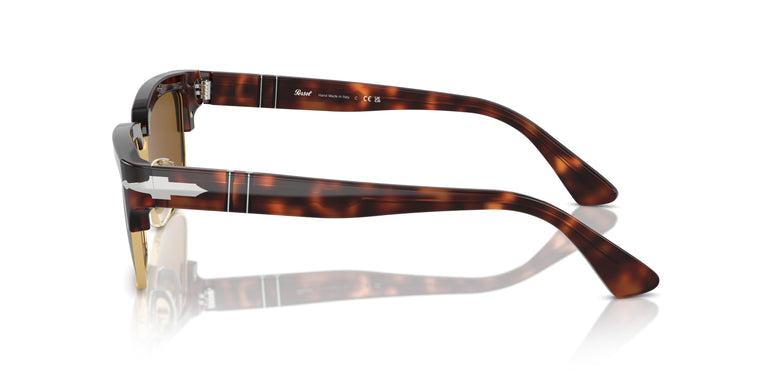 Persol's latest Cellor model embodies Italian elegance and craftsmanship. Enhanced with the iconic Supreme Arrow and Meflecto details on the temples, these sunglasses effortlessly combine metal and acetate. The colors of the metal, lenses, and acetate are synonymous with Persol's iconic image. The new Cellor model offers a vintage design with iconic details on the acetate temples, including the Supreme Arrow and Meflecto.