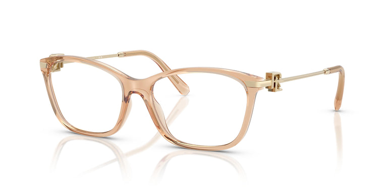The iconic RL initials draw attention, along with the openwork details and functional hinge. This butterfly frame blends classic elegance with contemporary style, seamlessly combining the brand's heritage with a modern sensibility. A beautiful front, in solid-color and transparent acetate, stands out, matching the temple tips. Modern butterfly frame with an injected front and metal temples. Designed with a universal fit, it's perfect for a multitude of face shapes and sizes.