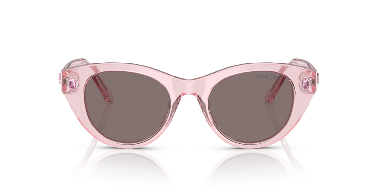 These fun swarovski sunglasses exude a retro chic vibe. Inspired by the swarovski millenia family, the round frames are made of acetate. The minicrystals, which bring the brand's exclusive sparkle, are arranged on the front and on each temple, and are presented in swarovski's identifiable octagonal shape. Set in a bezel, there are 2 crystals on the front and 2 on the temples, with an exclusive octagonal cut. In a display of cheerful extravagance, swarovski offers combinations of transparent colors in light blue, pink, and green with matching crystals.