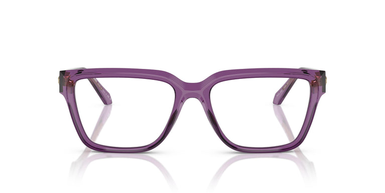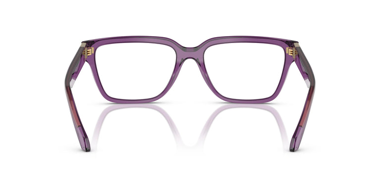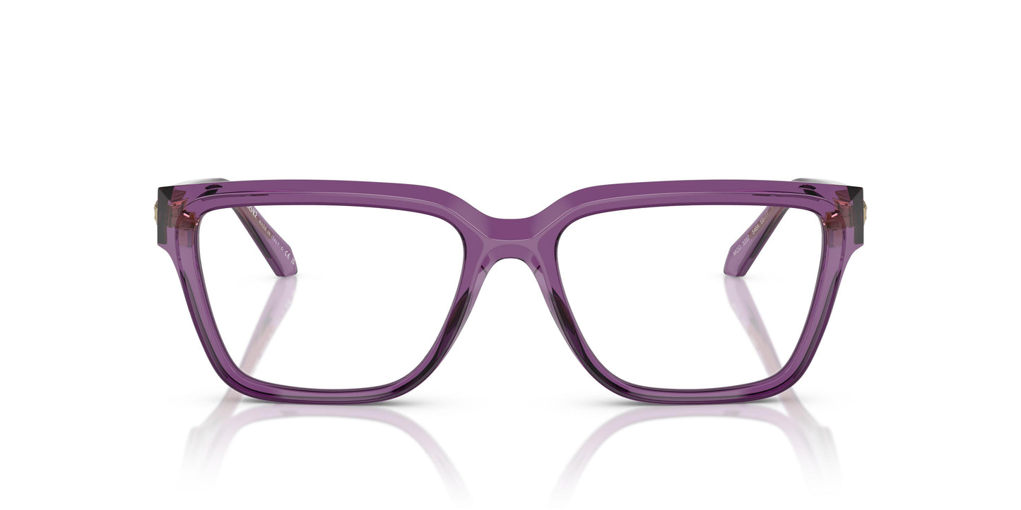 This eye-catching model features a striking square frame that combines sophistication and versatility with legendary Versace elements. Made from lightweight recycled acetate, a look at the side reveals a bold metal Medusa plaque on the temple for a more delicate look. Available in traditional black and havana, as well as a rich transparent red and violet. A three-dimensional milled front energises a look that blends modern comfort with premium aesthetics.