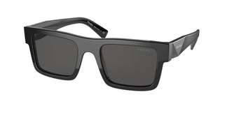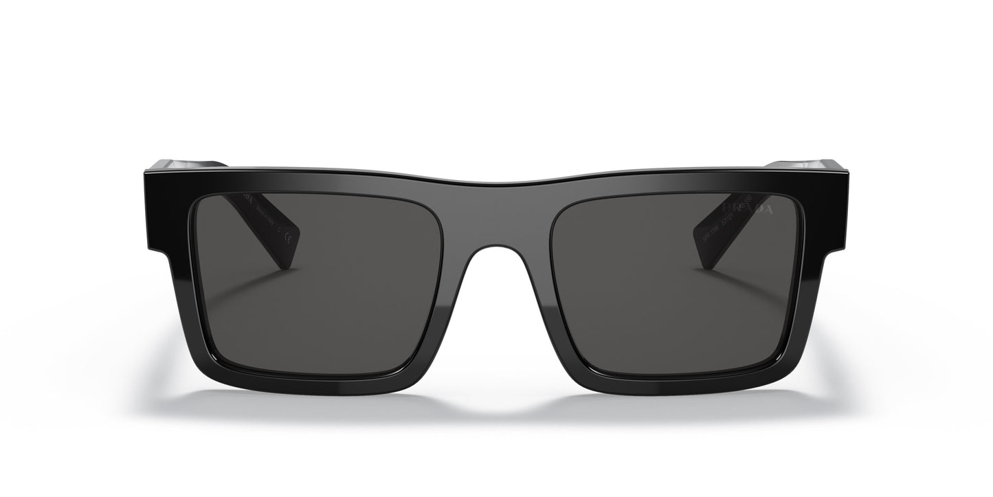 Accentuating the sculptural volumes, the multifaceted triangular temples define the silhouette of this runway-inspired look. A powerful square acetate sunglass with flat lenses and wide faceted temples. Wide faceted triangular temples with the Prada lettering logo under varnish.