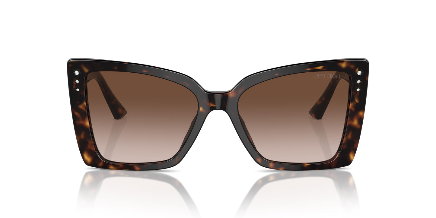 This charming butterfly model, a burst of femininity, is presented in bold faceted acetate with sparkling crystal accents. A striking faceted acetate frame, this bold design comes in shades of blue, red, black, beige, or Havana. Hand-set crystals parade across the front, while the top of the temples and hinge are decorated with a rhinestone trim.