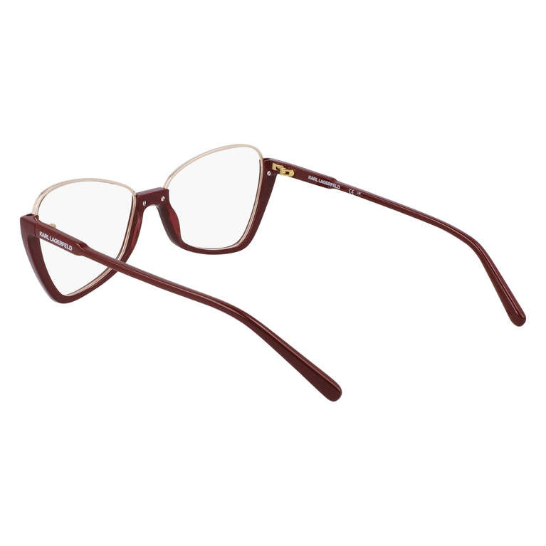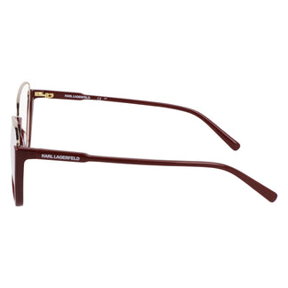Explore the sophistication embodied in the Karl Lagerfeld KL354 eyeglasses. Designed for the modern woman, they feature a square frame that combines elegance and boldness. The burgundy metal front adds a touch of distinction, while the carefully sculpted bridge and temples ensure an impeccable fit. Every detail has been conceived to offer a unique visual experience, fusing style and functionality into a work of optical art.