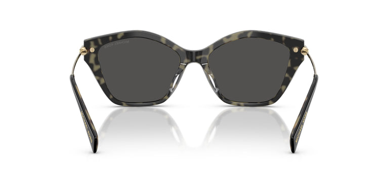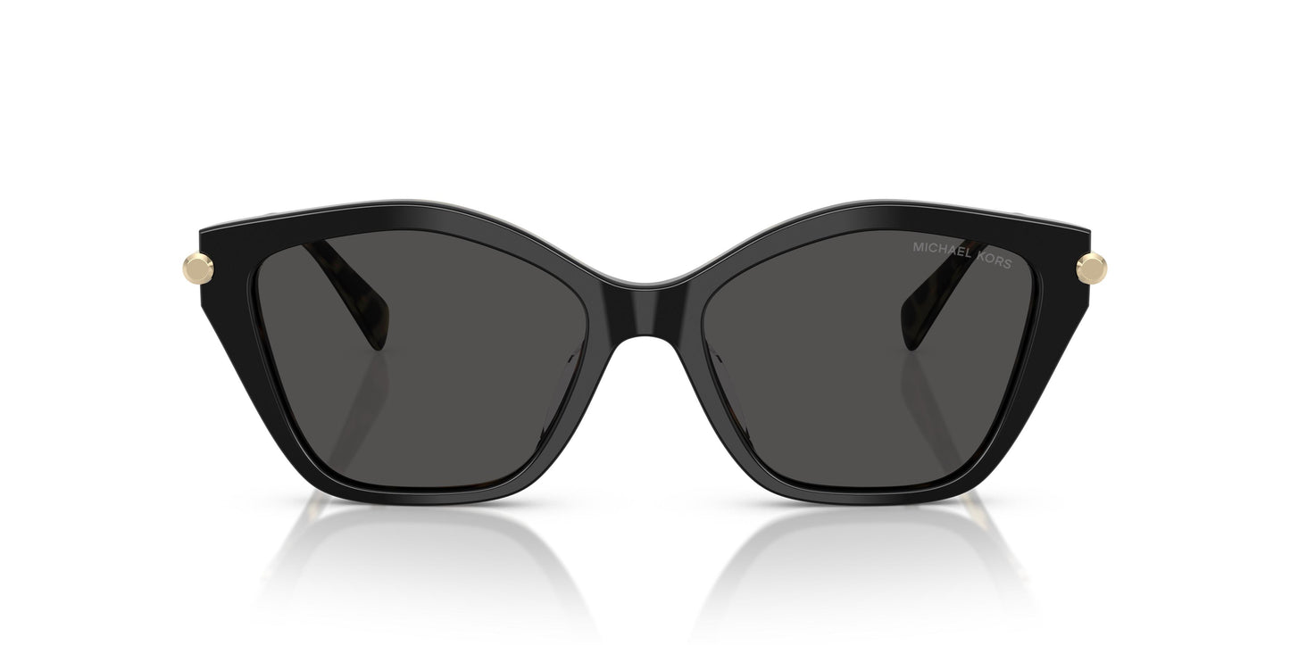The irregular acetate silhouette offers a unique twist on a timeless design, while metallic studs at the temples add a touch of rebellious glamour. Sleek metal temples complete the look of luxury and attitude. Front stud details at the temple are inspired by Michael Kors' legendary Astor hardware. Universal fit for a wide range of face shapes and sizes.