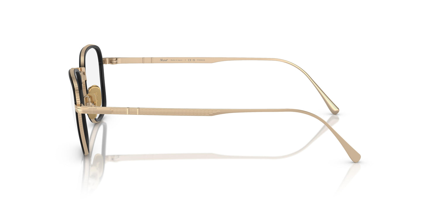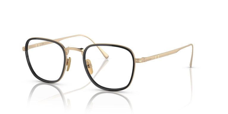 Pure Japanese titanium, visionary Italian design, nothing more. A flawless fusion of international excellence defines the essence of contemporary sophistication: Persol Total Titanium. A modern geometric shape with new double-layer colored frames, a slim guilloché bridge, and signature nose pads. New double-layer colored frames in classic gold or silver titanium frames and modern black or brown titanium frames.