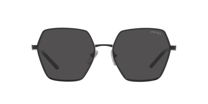 Prada-inspired decoration, which reinvents the brand's icons as structural elements of style, defines the profile of an eclectic selection of hybrid frames with slim metal profiles or glamorous acetate with enameled or acetate colored details. Feminine metal cat-eye frame with a sinuous metal top bar for a sleek and sophisticated look. Triangle logo cutout on the metal temple midway before the temple tip.