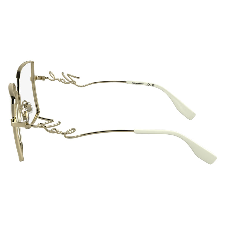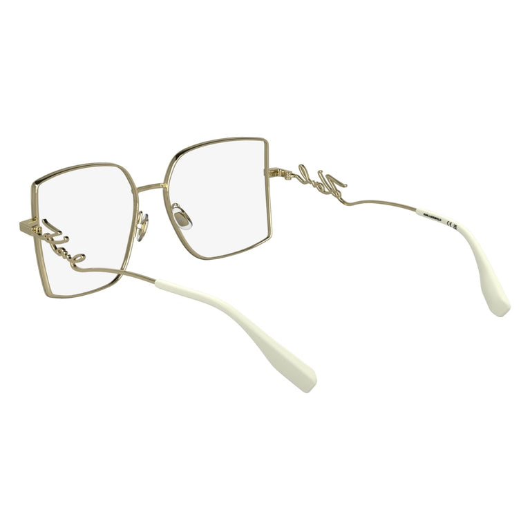 Introducing the Karl Lagerfeld KL359 optical glasses, a true eye-catcher. With their square-shaped frames, these glasses blend elegance and modernity. The shiny gold metal front adds a sophisticated shine, while the perfectly designed temples ensure a comfortable fit. The subtle, refined bridge adds a touch of distinction, making these glasses the ideal accessory for those looking to stand out with class and style.