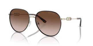 A combination of delicate metal frames with Windsor accents on the temples. Dynamic metallic aviator frames with gradient lenses. Frames featuring Windsor accents on the front of the temples and temples featuring a delicate take on Michael Kors' Empire hardware.