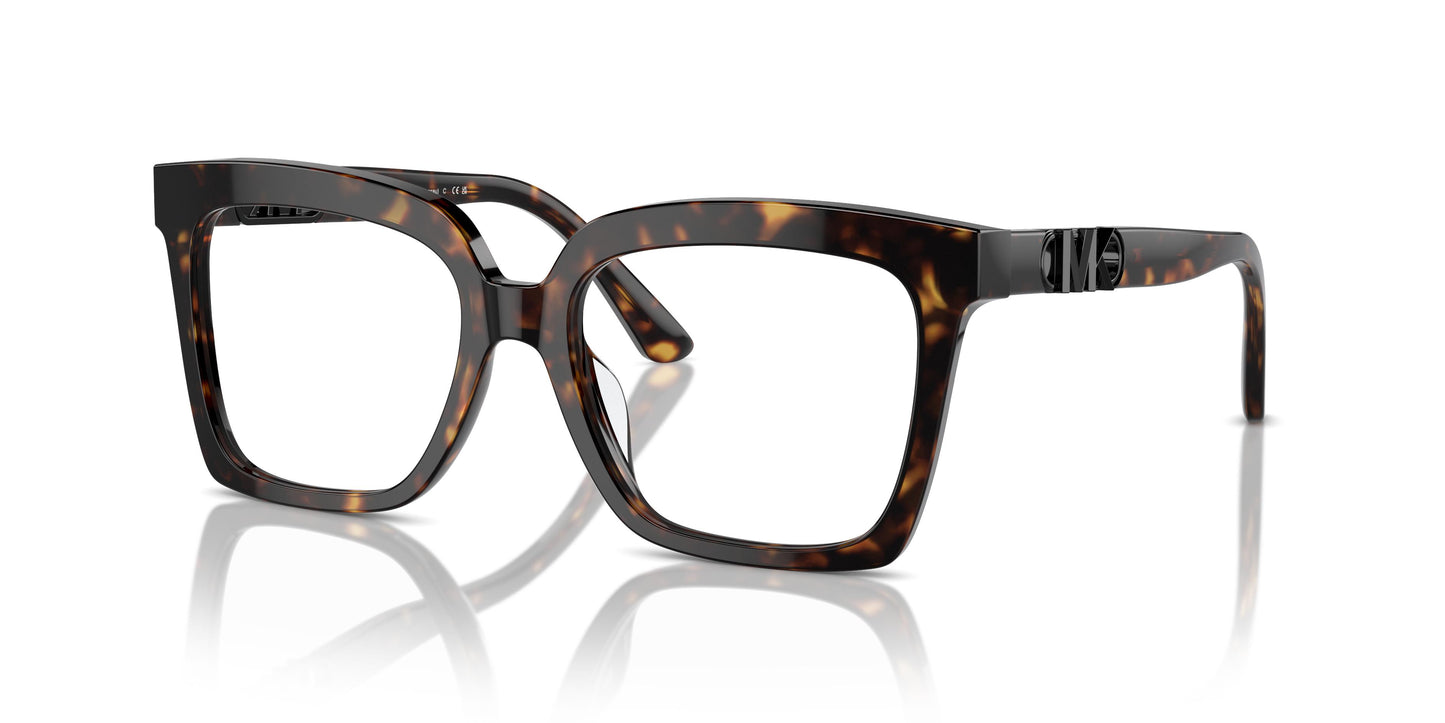 Enhance your style with this frame, featuring a glamorous oversized square shape that embodies luxury. The acetate frame proudly showcases Michael Kors hardware, elegantly perforated on the temples to add a touch of sophistication to your glasses. Empire logo hardware inset on the acetate temples. Glamorous oversized square frame.