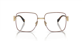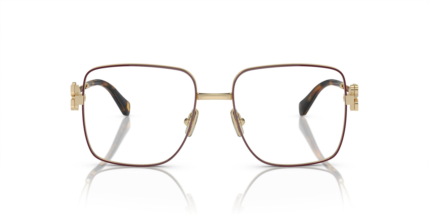 When Miu Miu combines oversized lenses with a delicate metal frame, what more could you ask for? This optical model symbolizes the brand's boldness and personality; the vertical logo is incorporated into the temples as part of the hinge. Featuring an elegant oversized square frame, this model comes in four shades of feminine gold metal. All colors are enhanced by Havana temple tips, while two color ranges feature enameled rims in black and dark red.