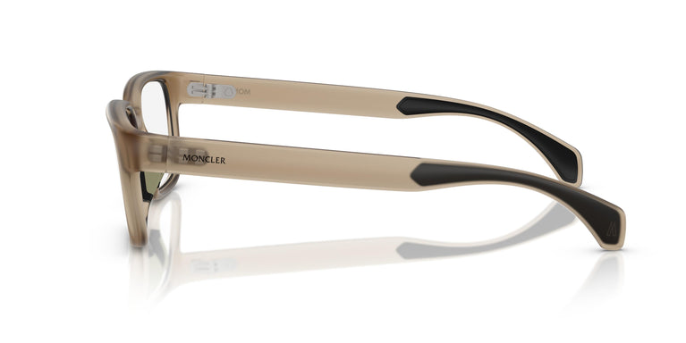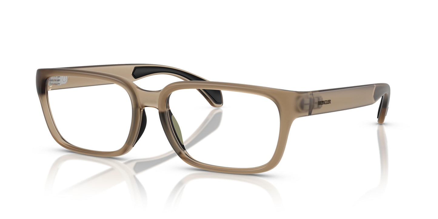 Featuring a narrow rectangular shape, these optical glasses combine metropolitan style with alpine finesse. Sleek lines and subtle rubberized details offer a seamless look that blends technical performance and refined style, designed to equip pioneers in any environment. The Moncler logo sculpted into the minimalist hinge details adds contemporary refinement. Rubberized nose pads and temple tips add a grippy style.