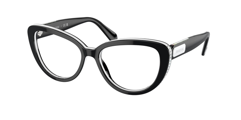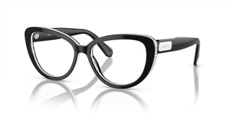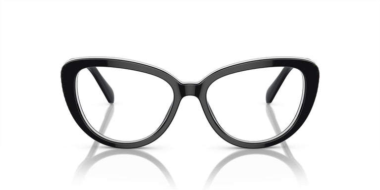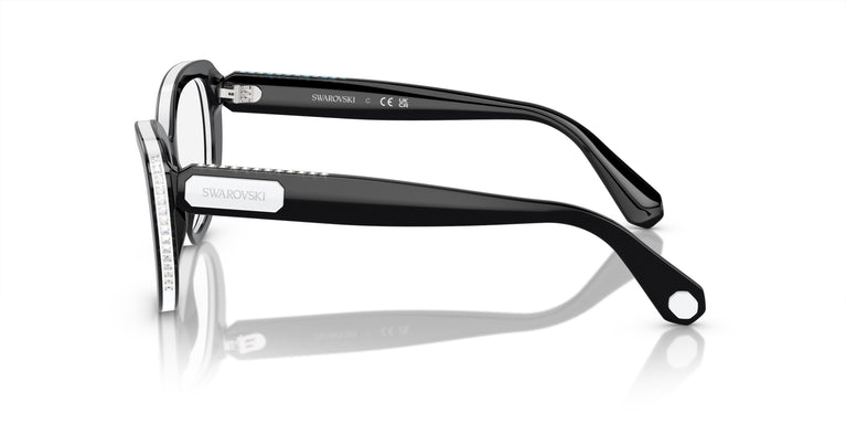 This cat eye model shines from every angle thanks to the 54 swarovski crystals on the front and top of the temple. Thanks to a meticulous color study, the combination of crystal and acetate colors is another standout feature. The unmistakable octagonal shape of swarovski is presented in multiple ways on the temples as part of the logo and on the tips. Acetate frame in cat eye shape with a three-layer front allows for a beautiful color combination.