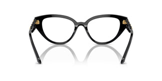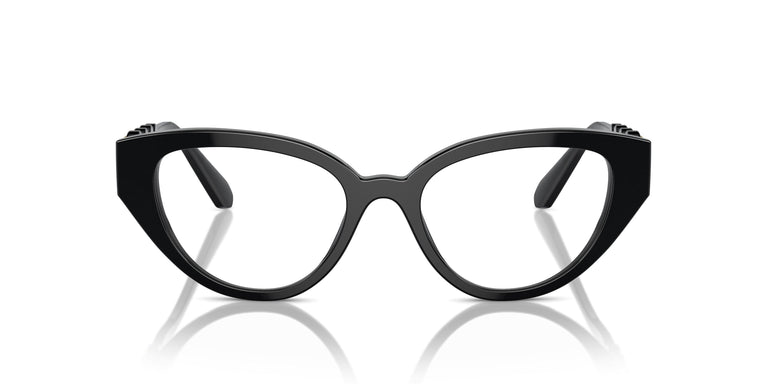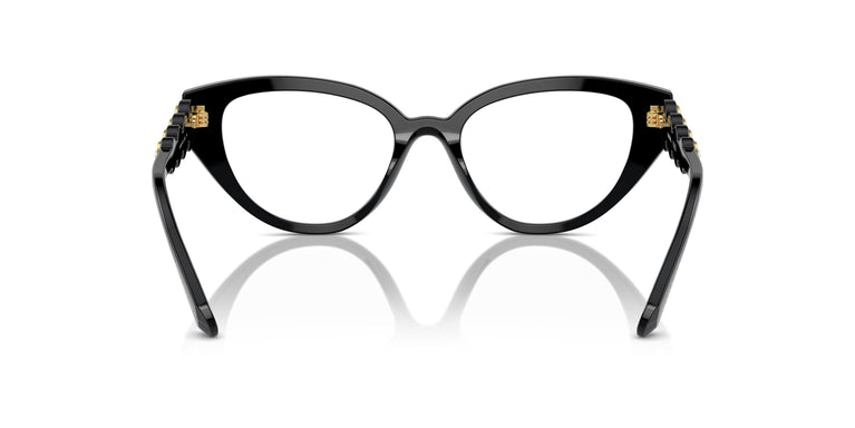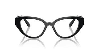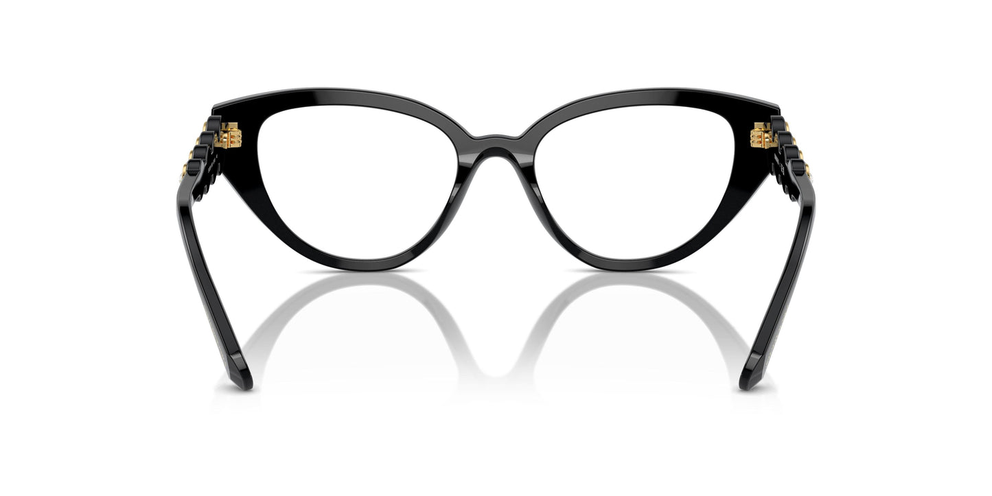 A cat eye frame with acetate illuminated with 4 shiny Swarovski crystals along the temples. Temple inspired by the brand's jewelry collections, where crystals are set in metal bezels. The 4 shiny crystals on each temple are from Swarovski and the end tips offer an extra touch of the brand with a subtle logo. Transparent crystals with golden coating in the colors of black, havana, and burgundy acetate. Aquamarine tone on tone in the blue-white option.
